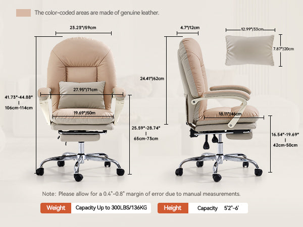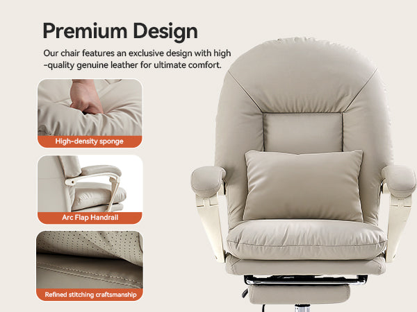 • Designed for home use, featuring an adjustable lumbar pillow and retractable footrest for work, reading, or relaxing.