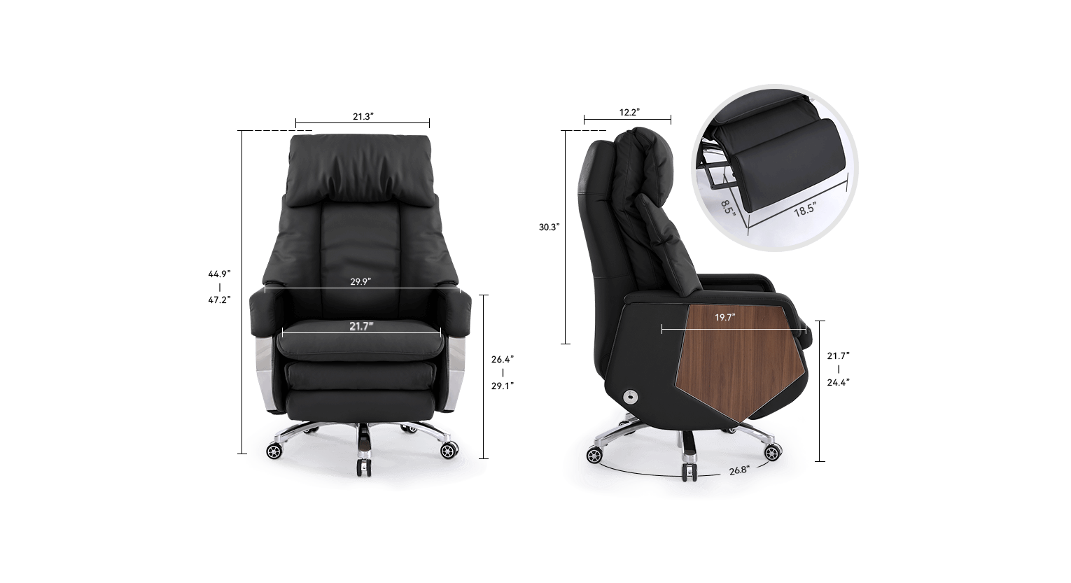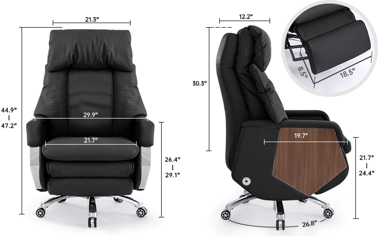 The EMIAH M032 executive office chair puts all controls within easy reach on the right armrest. Whether you're working, gaming, relaxing, or taking a nap, a simple button press lets you effortlessly adjust your seating position for a comfortable experience.
